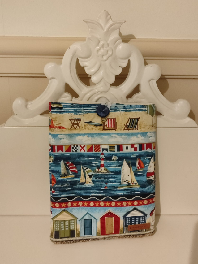 This Travel Book Cover has been homemade with recycled fabric.